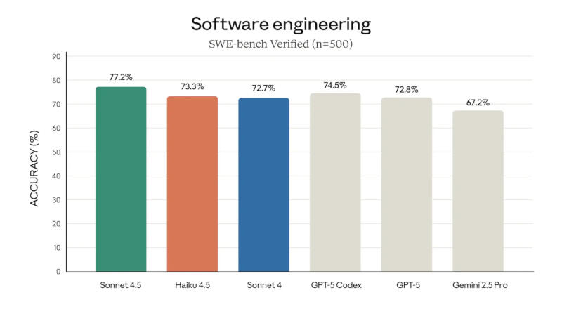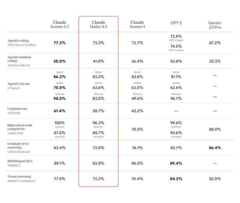 Anthropic şirkəti Claude Haiku 4.5 adlı yeni süni intellekt modelini təqdim edib. Bu, şirkətin ən sadə modelinin yenilənmiş versiyasıdır. Tərtibatçıların sözlərinə görə, model Sonnet 4 səviyyəsində cavablar verir, lakin 3 dəfə ucuzdur və 2 dəfədən çox sürətlidir. Anthropic bu iddiasını test nəticələri ilə əsaslandırıb: Haiku SWE-Bench Verified kod yazma testində 73%, Terminal-Bench əmr sətri bacarıqları testində isə 41% nəticə göstərib. Bu göstəricilər Sonnet 4.5-dən aşağı olsa da, Sonnet 4, OpenAI GPT-5 və Google Gemini 2.5 modelləri ilə müqayisə oluna biləcək səviyyədədir.